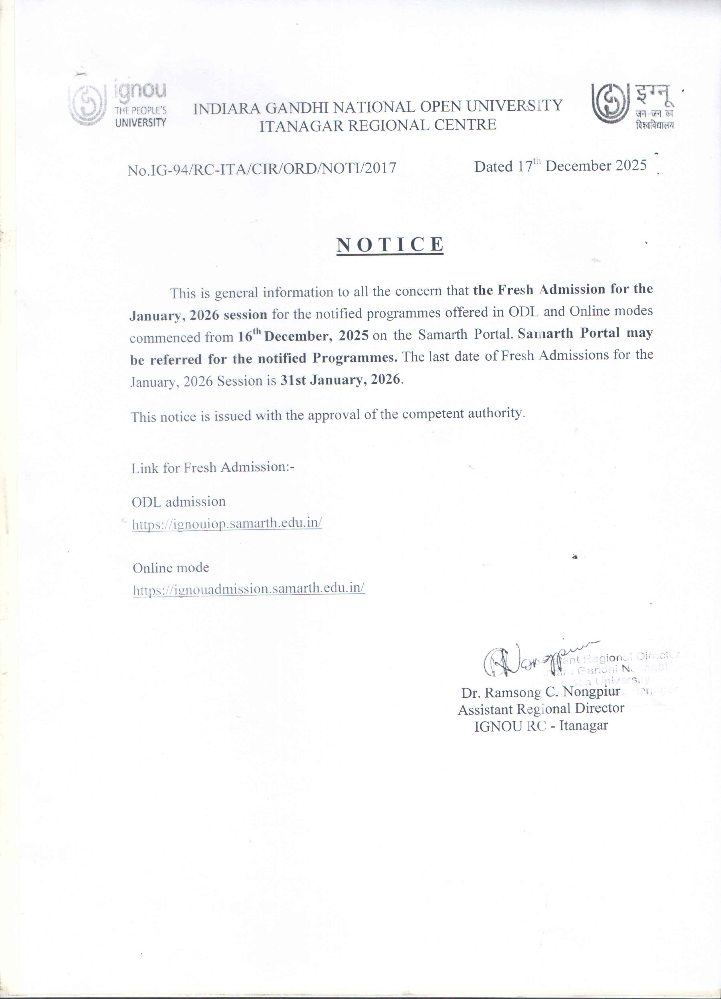 Last Date further extended for Fresh Admission and Re-registration for July 2025 Cycle